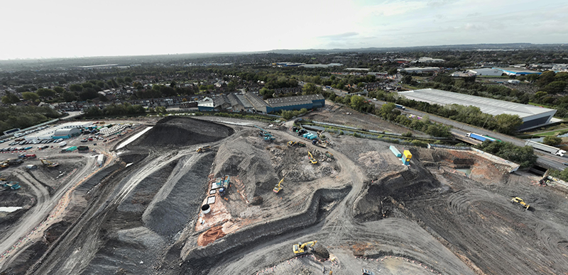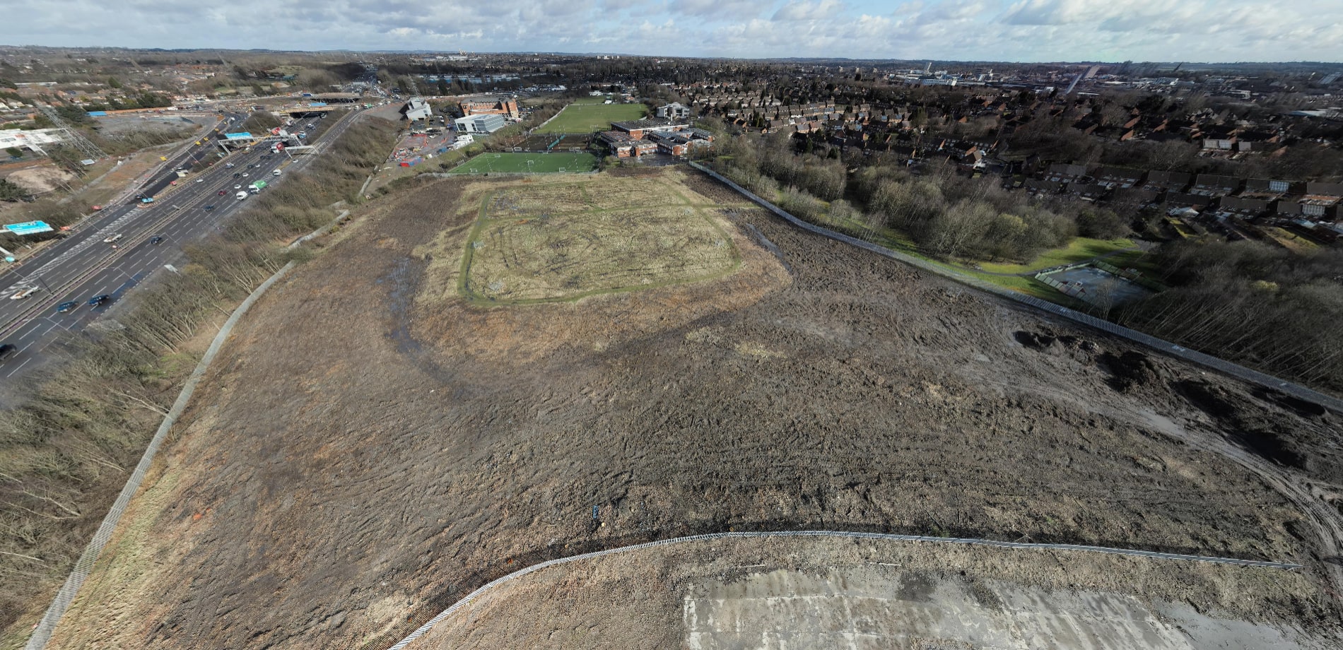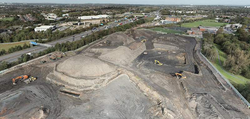 The site is bounded by the M6 motorway, which features an existing retaining wall. Our earthworks design and cut-fill operations were carefully developed with due regard for this structure, ensuring no impact to motorway stability or performance.